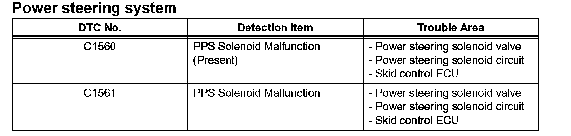 If a trouble code is displayed during the DTC check, inspect the trouble areas listed for that code. For details of the code, refer to the "DTC" below.