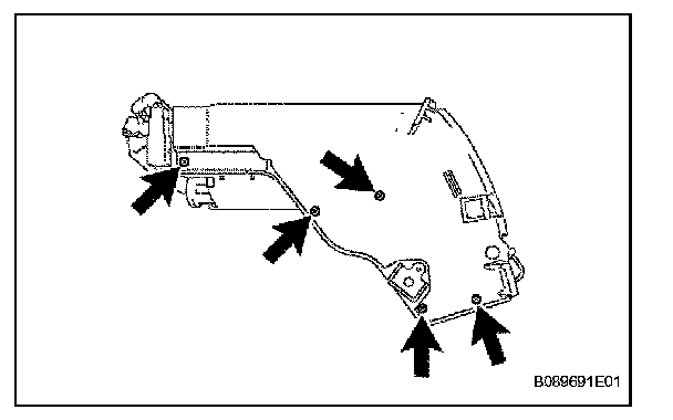 c. Remove the 5 screws and instrument panel finish panel No.2 retainer.