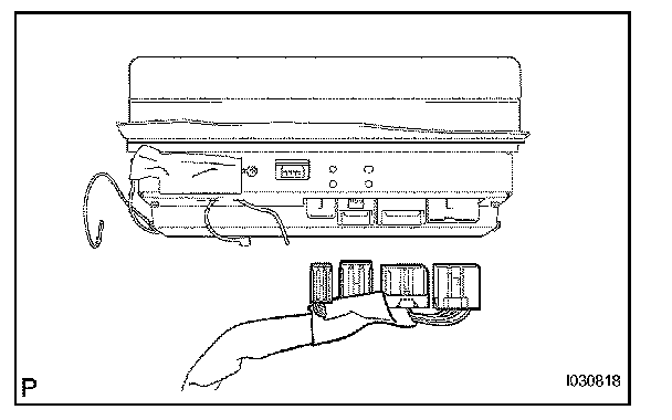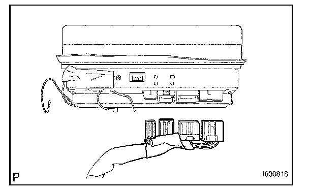 b. Disconnect the connector. Then remove the multidisplay (with panel) and clip.