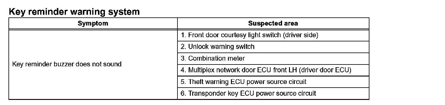Problem Symptoms Table - Key Reminder Warning System:
