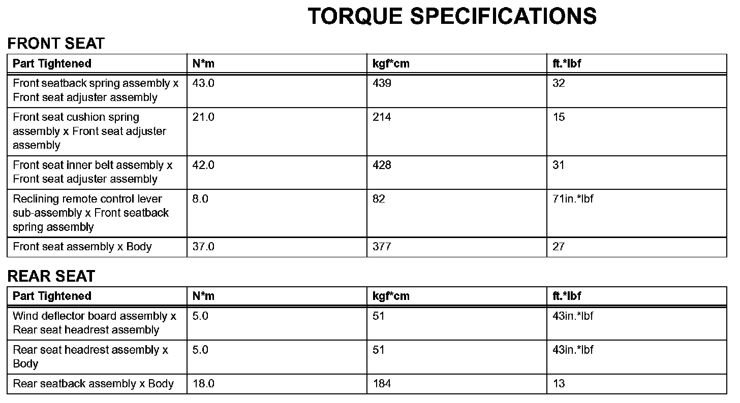Seat - Torque Specifications: