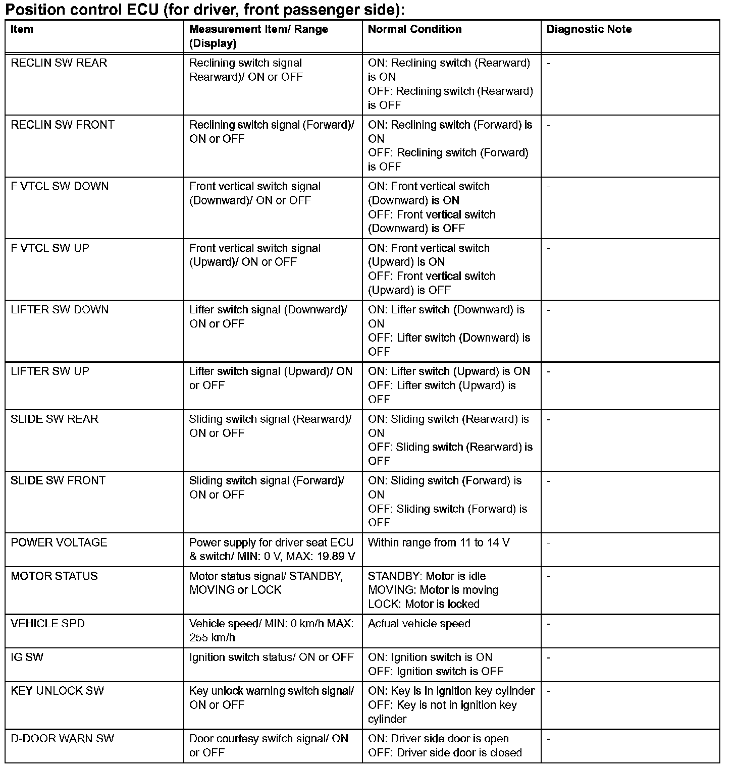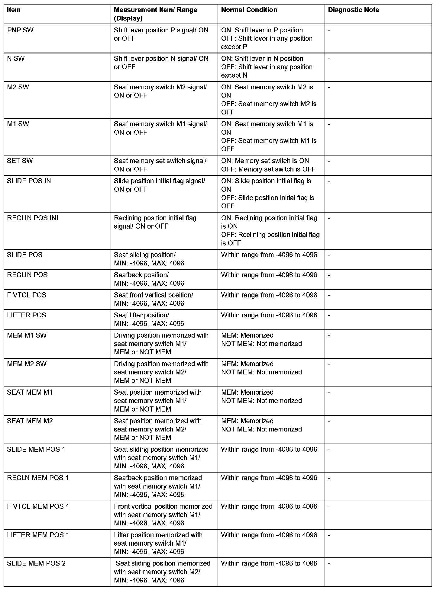 HINT: Using the intelligent tester's DATA LIST allows switch, sensor, actuator and other item values to be read without removing any parts. Reading the DATA LIST early in troubleshooting is one way to save time.