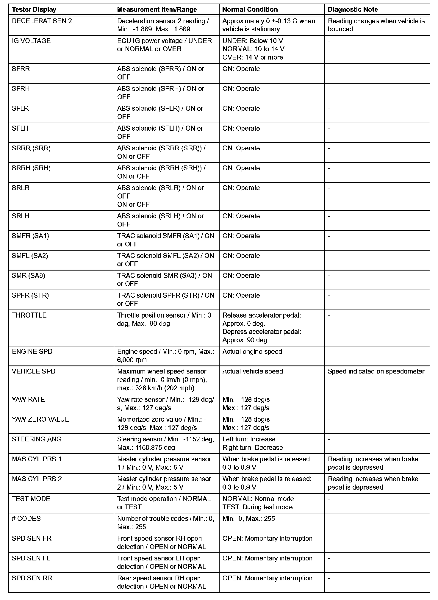 READ DATA LISTHINT: Using the intelligent tester's DATA LIST allows switch, sensor, actuator and other item values to be read without removing any parts. Reading the DATA LIST early in troubleshooting is one way to save time.