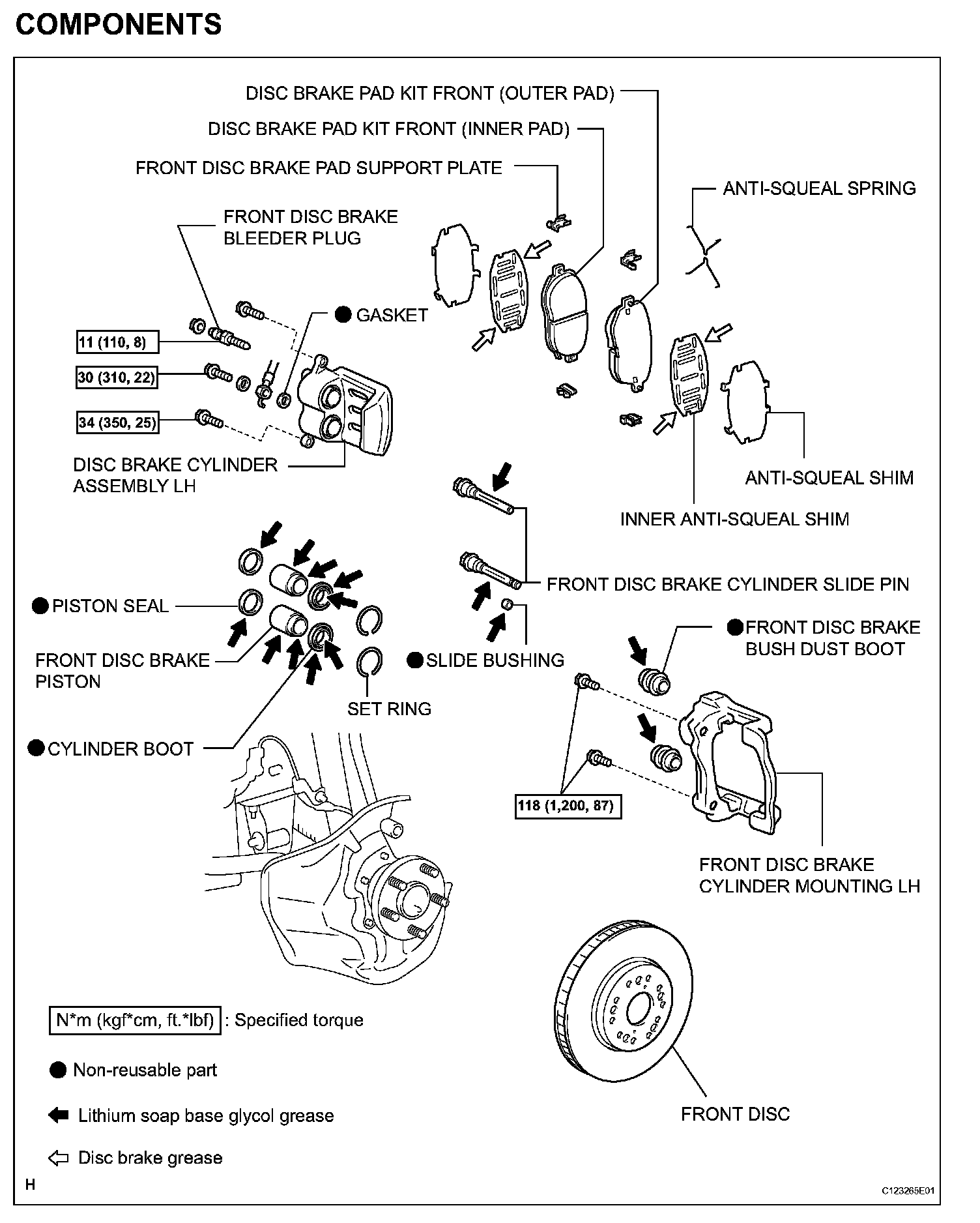 (a) Apply lithium soap base glycol grease to the 2 pistons.