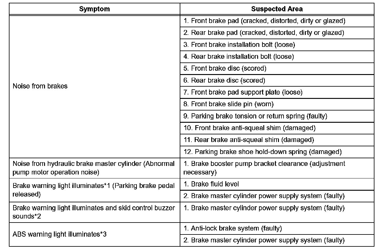 ^ *2, *3: Depressing the brake pedal repeatedly may turn on the warning light and the buzzer. It is normal if the light turns off and the buzzer stops sounding after a few seconds.