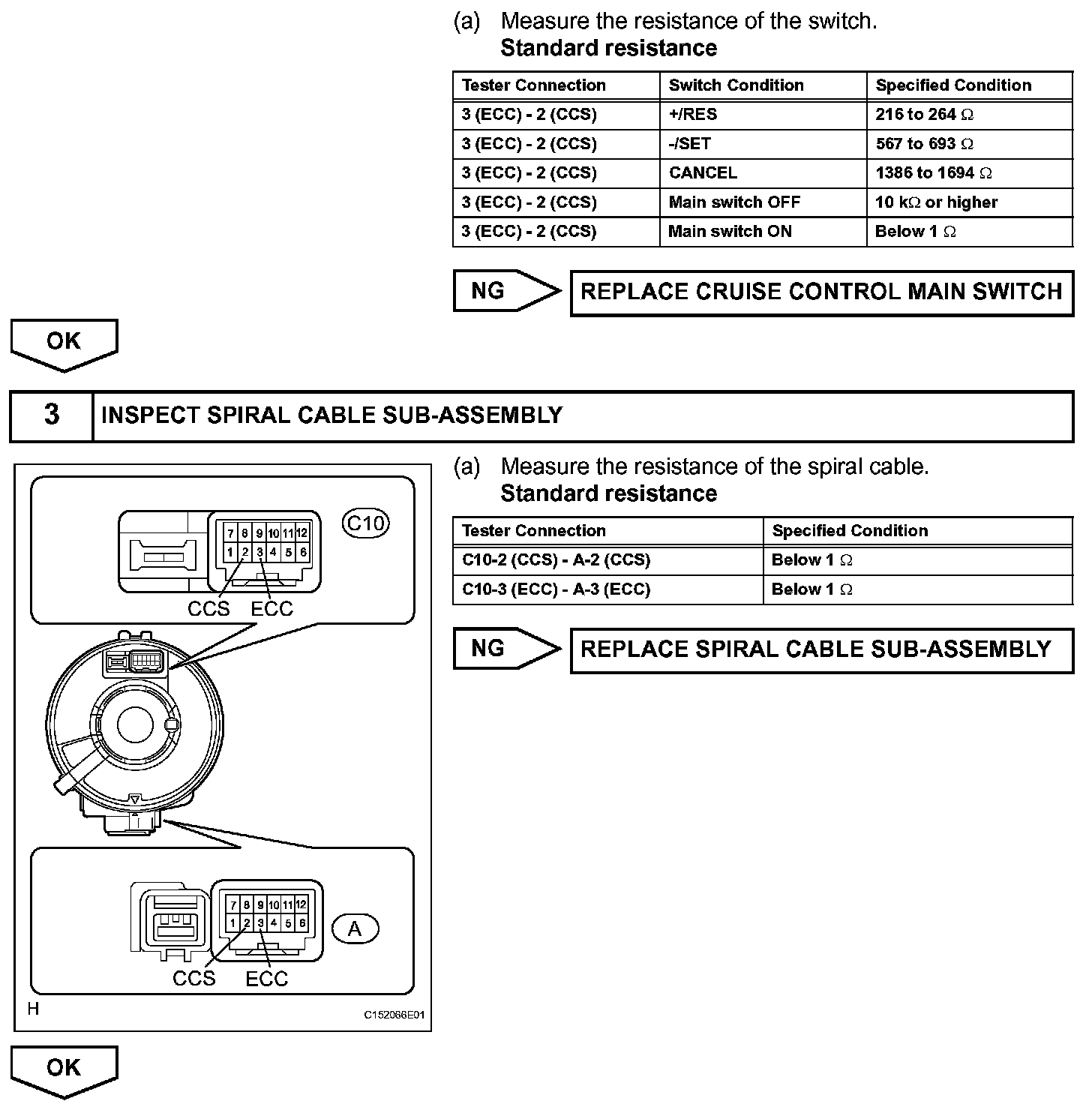 The battery supplies positive (+) battery voltage to the cruise control main switch. Then terminal CCS of the ECM receives the voltage according to the switch condition.