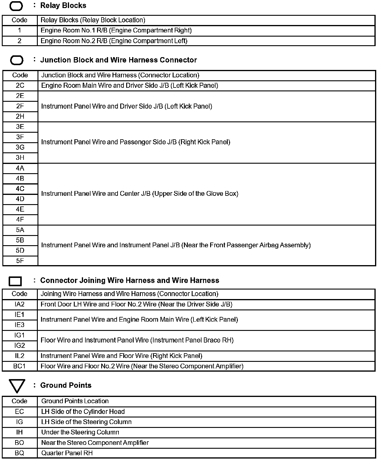 Locations: The locations of components, connectors, ground points, and splices referred to within these diagrams can be found at Vehicle Locations. Locations