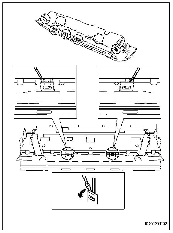 b. Using a screwdriver, detach the 2 claws and remove the panel garnish from the A/C control.