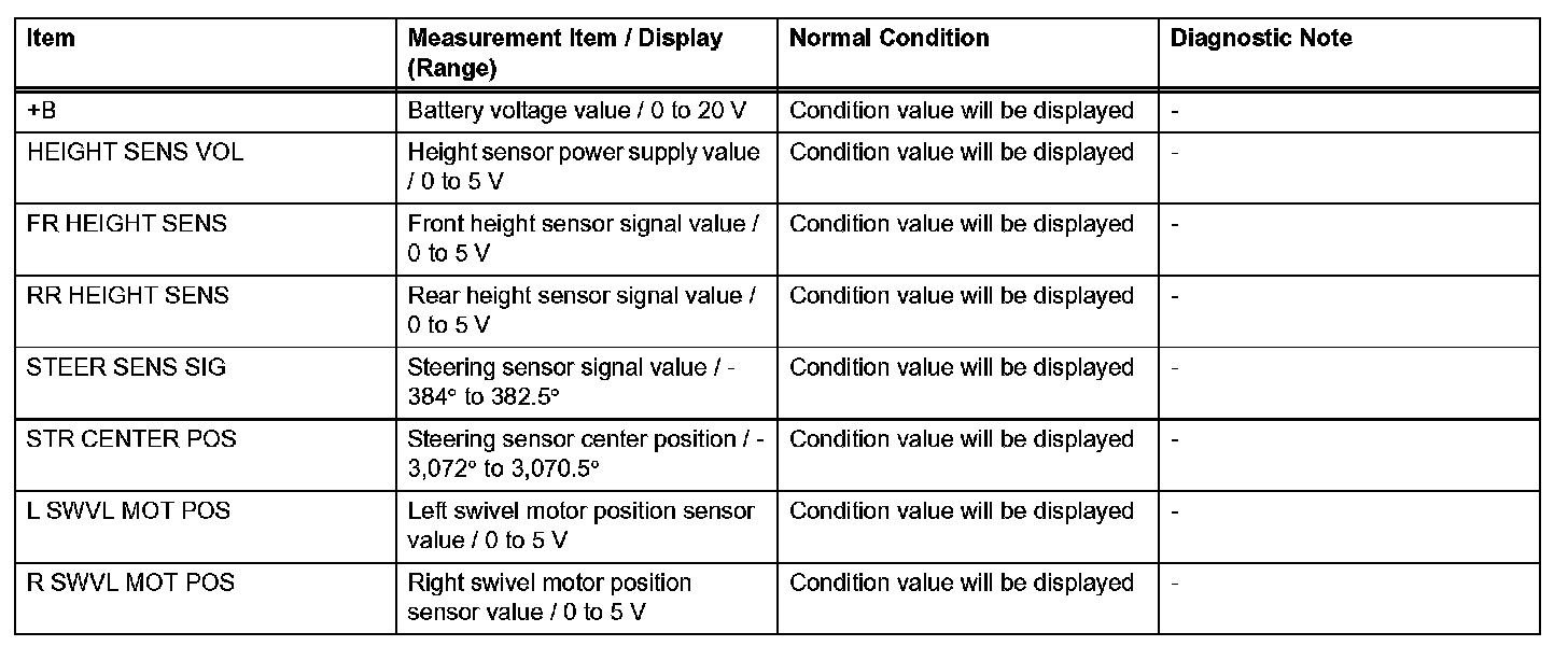 READ DATA LISTHINT: Using the intelligent tester's DATA LIST allows switch, actuator and other item values to be read without removing any parts. Reading the DATA LIST early in troubleshooting is one way to save time.