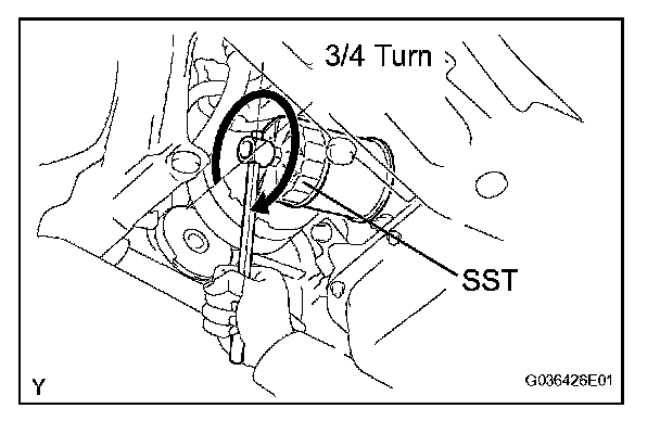 If not enough space is available to use a torque wrench, tighten the oil filter a 3/4 turn by hand or a common wrench.