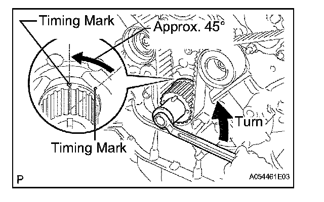 (3) Using the crankshaft pulley bolt, turn the crankshaft counterclockwise by approximately 45°.