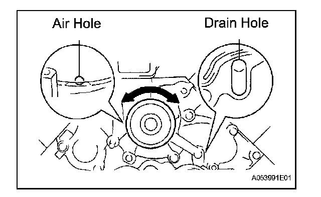 (2) Turn the pulley, and check that the water pump bearing moves smoothly and quietly.