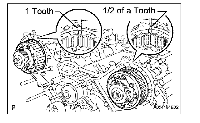 Camshaft timing pulley of LH bank: 1/2 of a tooth