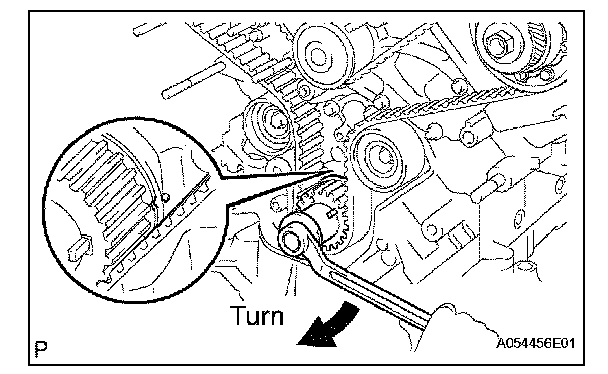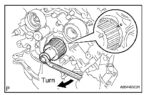 (1) Using the crankshaft pulley bolt, slowly turn the crankshaft timing pulley 2 revolutions from TDC to TDC.