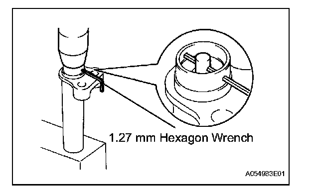 (2) Align the holes of the push rod and housing. Pass a 1.27 mm hexagon wrench through the holes to keep the setting position of the push rod.