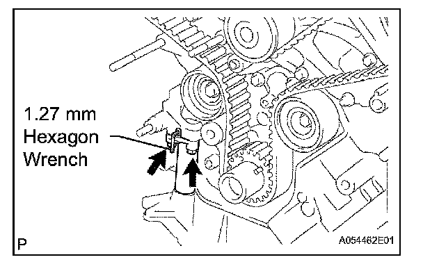 (1) Turn the hexagon wrench head portion of the camshaft to align the timing marks of the camshaft timing pulleys and timing belt plates.