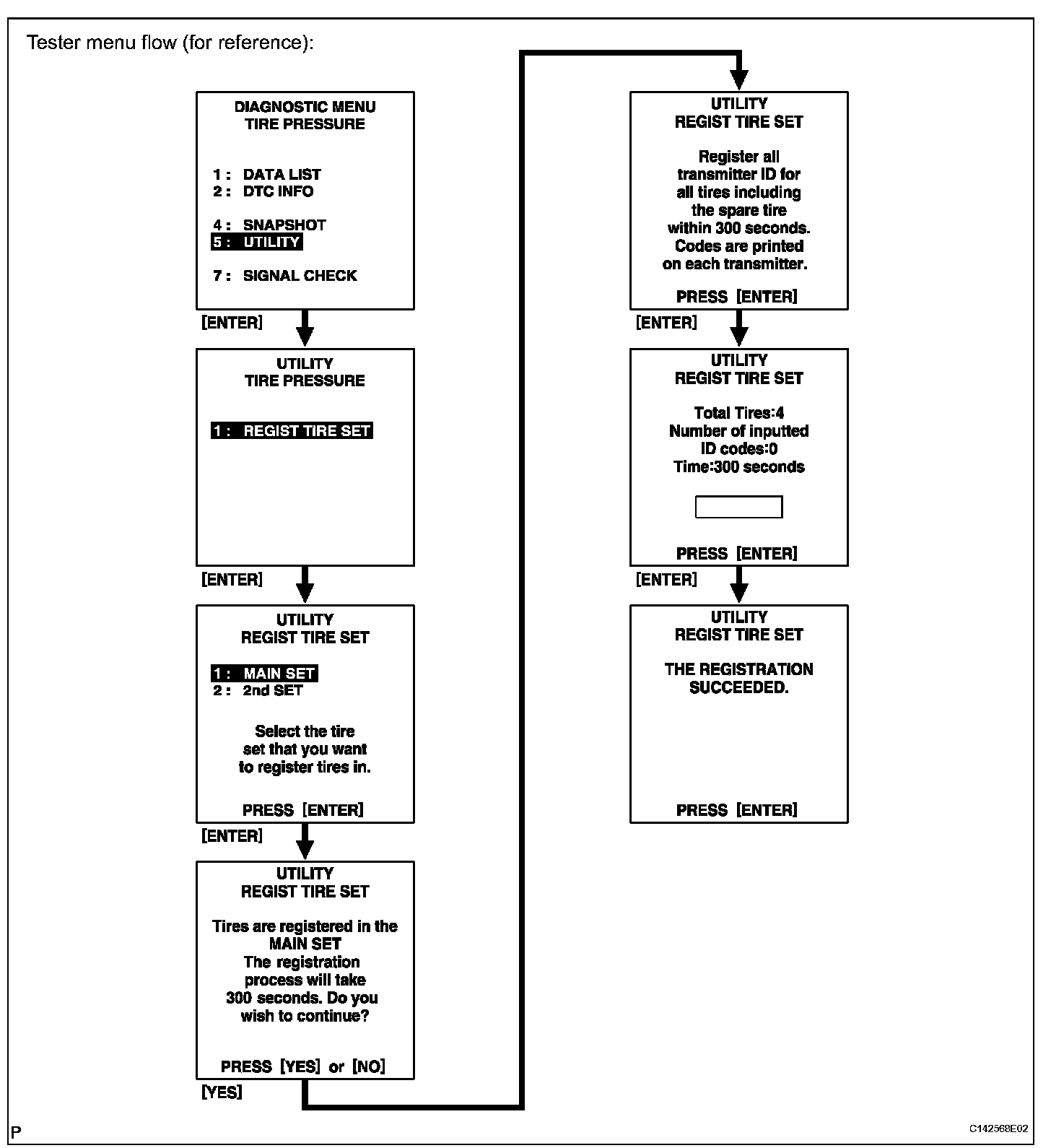 (e) Select the REGIST TIRE following the intelligent tester screen (UTILITY - REGIST TIRE) (Procedure "D").