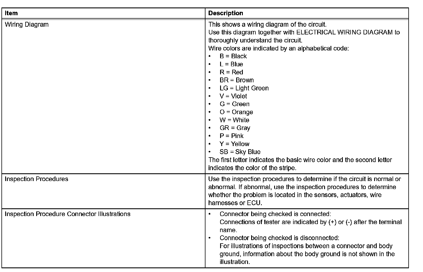 A description of the main areas of each circuit inspection is given.
