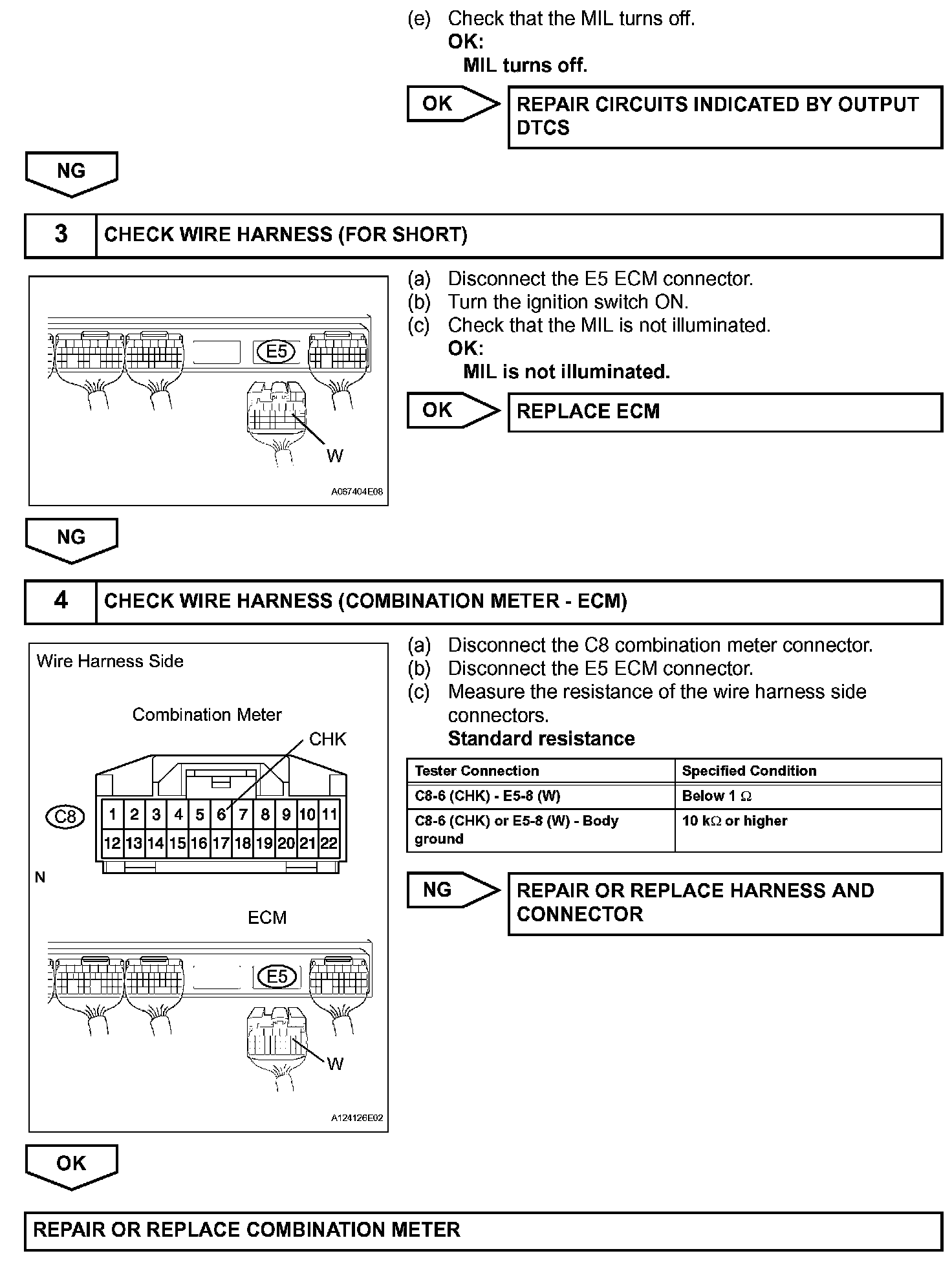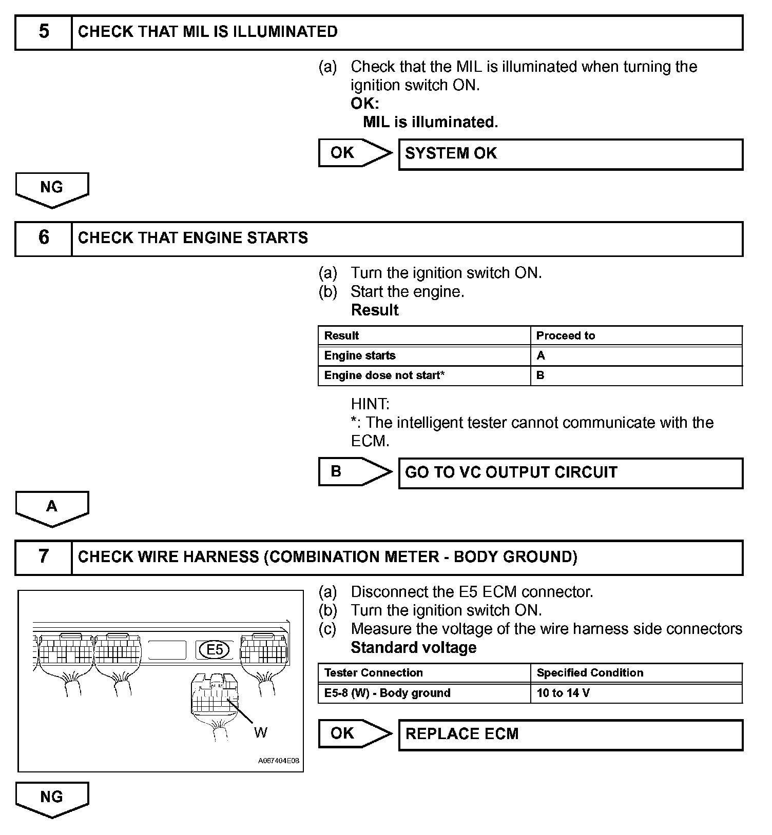 If the ECM detects trouble, the MIL illuminates. At this time, the ECM records a DTC in the memory.