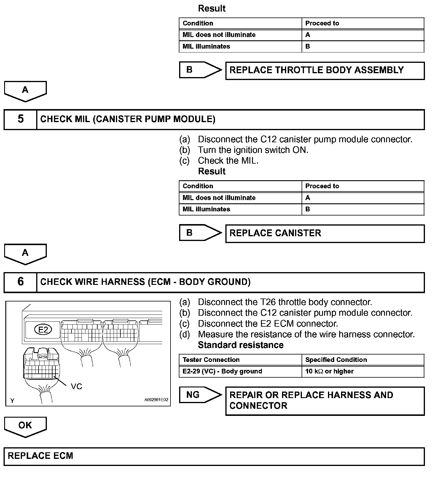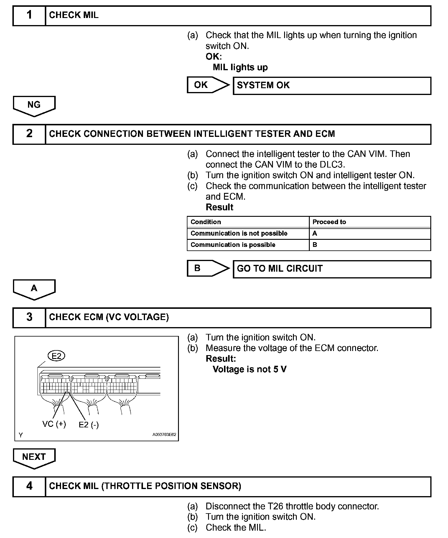 When the VC circuit is short-circuited, the microprocessor in the ECM and sensors that are supplied power through the VC circuit are deactivated because the power is not supplied from the VC circuit. Under this condition, the system does not start up and the MIL does not illuminate even if the system malfunctions.