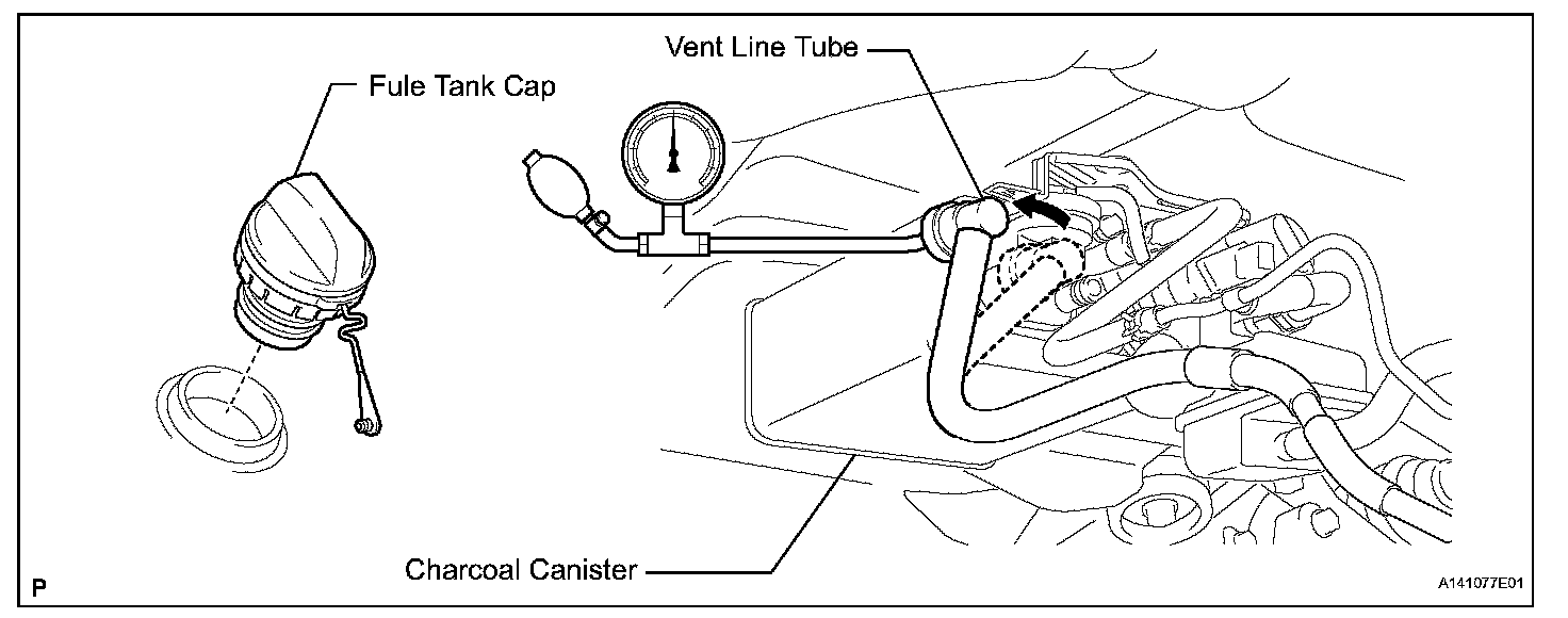HINT: Perform this inspection with the fuel tank less than 90% full. When the fuel tank is full, the fuel cutoff valve closes and pressure is released through the 1.5 mm orifice. As a result, when the fuel tank cap is removed, the pressure does not decrease smoothly.