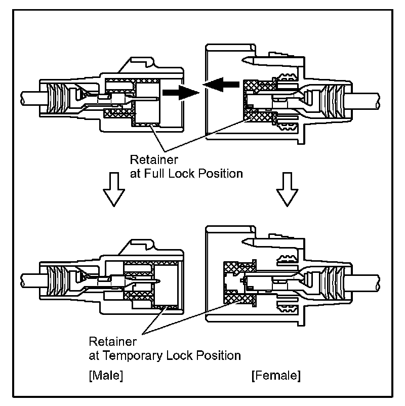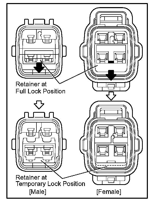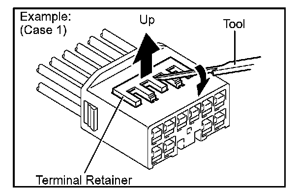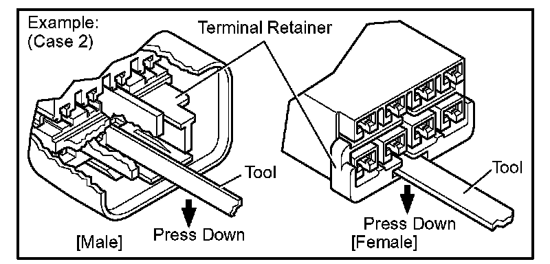 Insert the special tool into the terminal retainer access hole ( Mark) and pull the terminal retainer up to the temporary lock position.