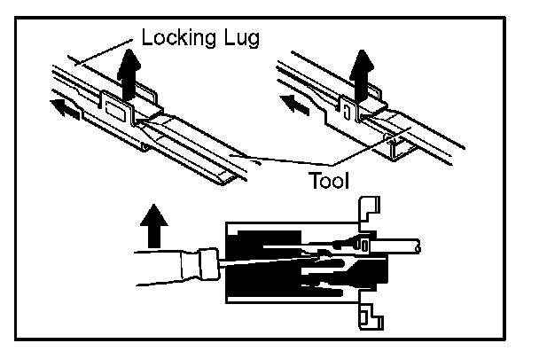 a. Locking device must be disengaged before the terminal locking clip can be released and the terminal removed from the connector.
