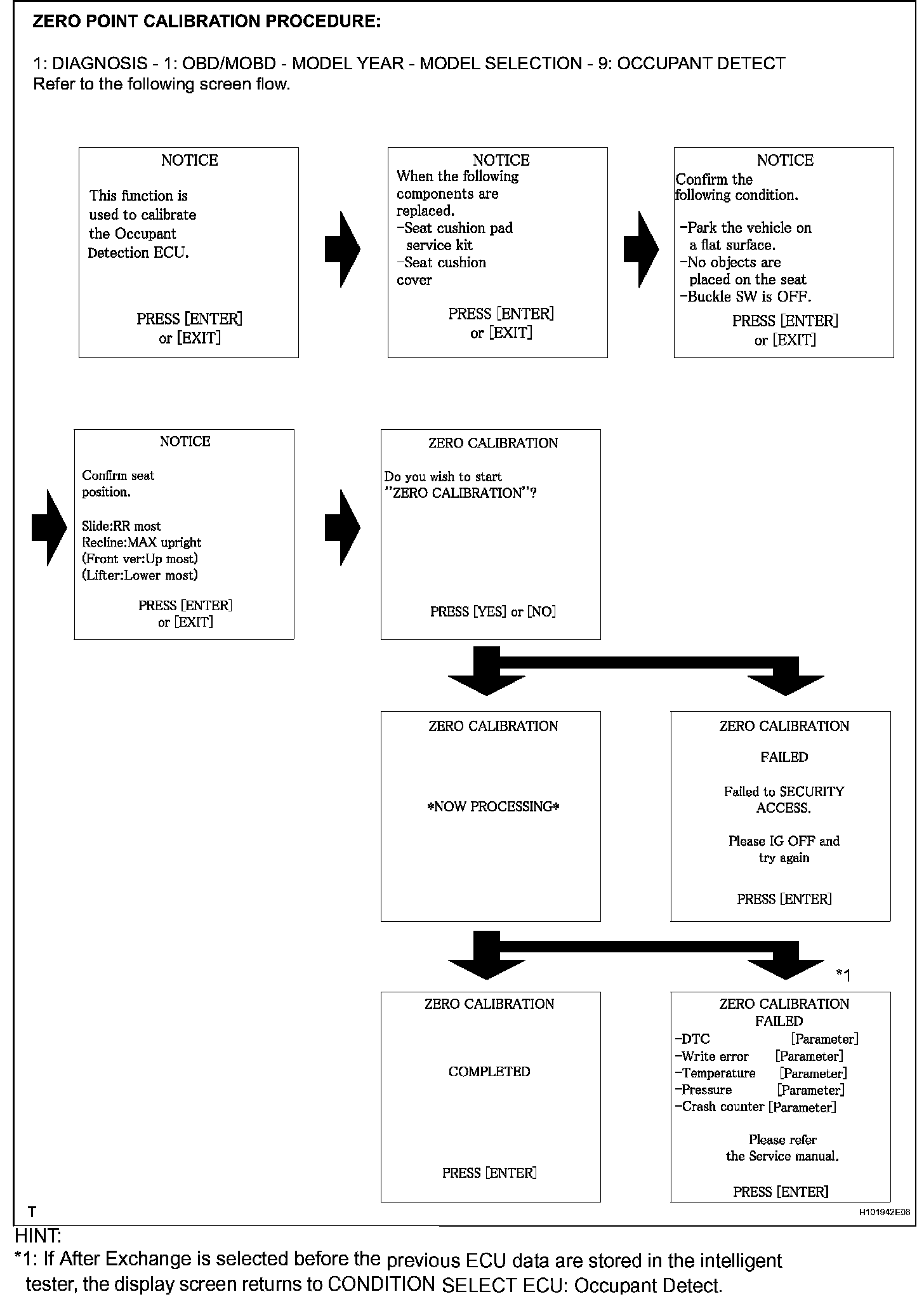 - If the zero point calibration is performed when the calibration conditions are not satisfied, DTC B1797 is output.