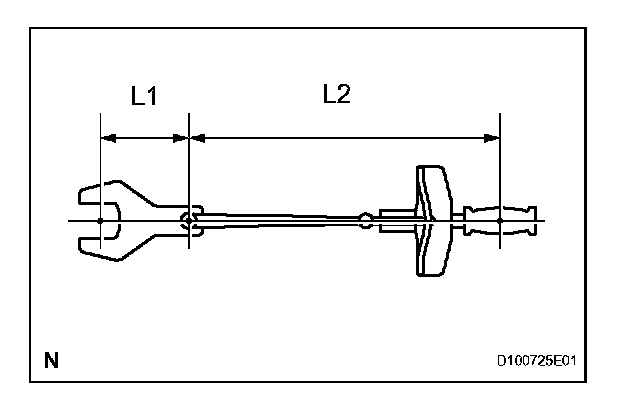 1. Use the formula below to calculate special torque values for situations where SST or an extension tool is combined with a torque wrench.