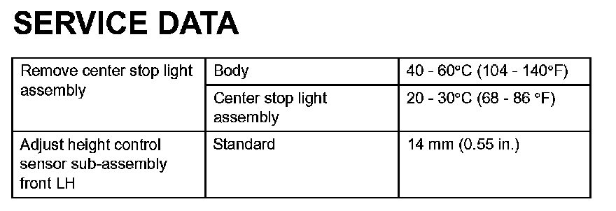 Lighting - Service Data: