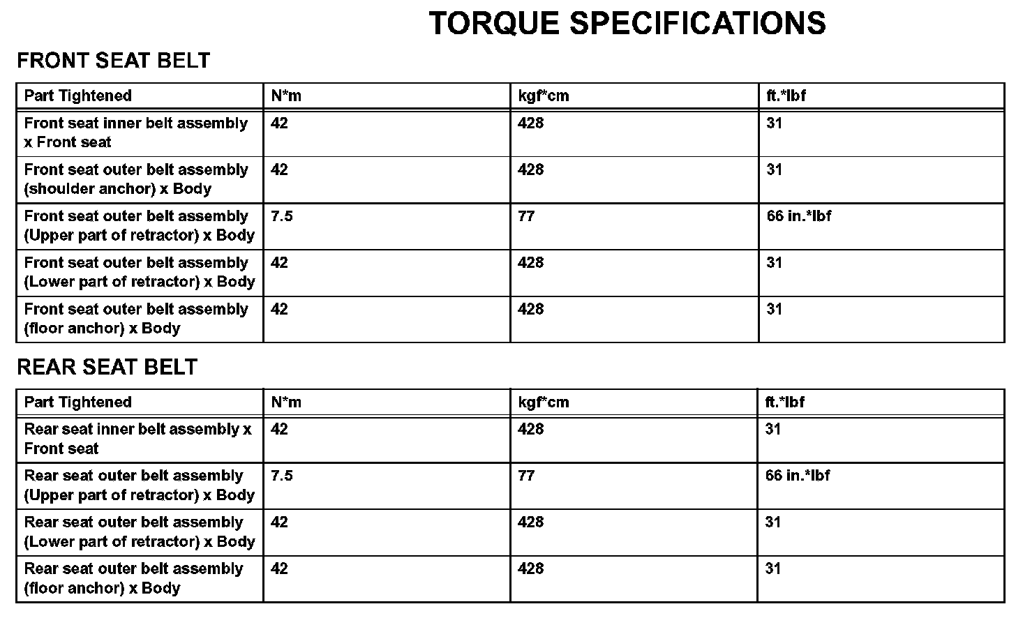 Seat Belt - Torque Specifications:
