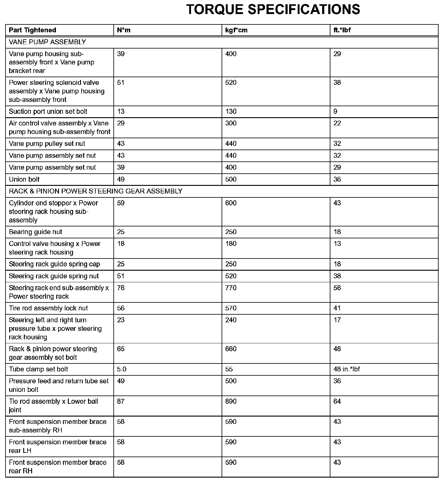 Power Steering - Torque Specifications: