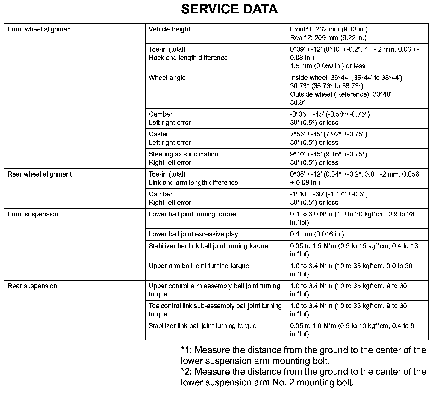 Suspension - Service Data: