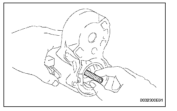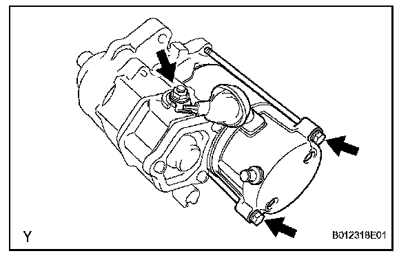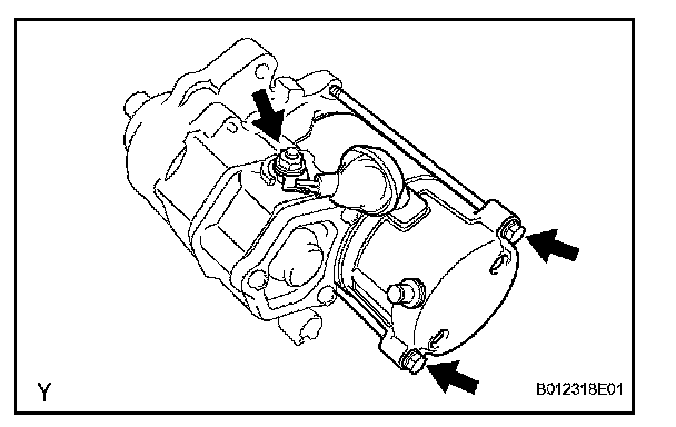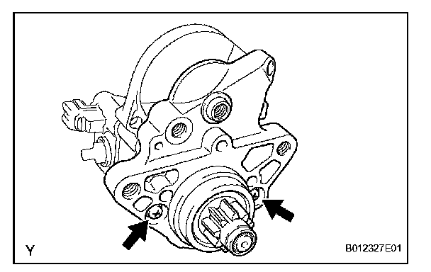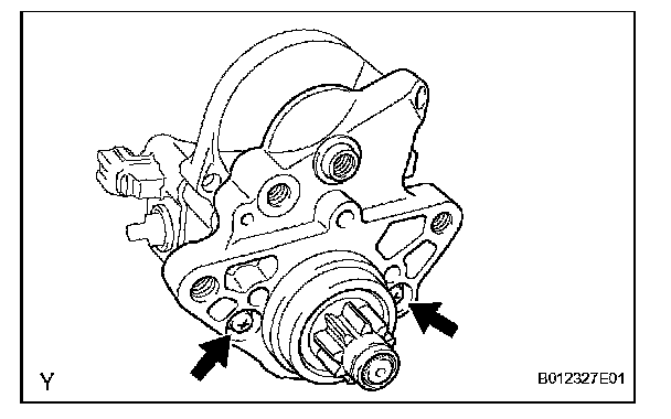c. Remove the 2 bolts, and pull out the starter yoke (with armature) from the magnetic switch.
