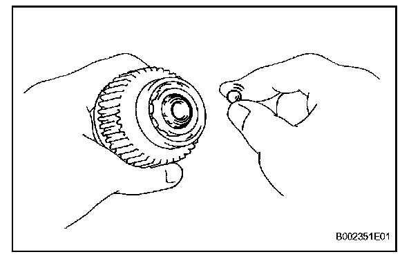 c. Using a magnetic finger, remove the steel ball from the clutch shaft hole.