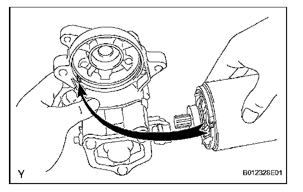 b. Align the protrusion of the starter yoke with the groove of the magnetic switch, and install the starter yoke and armature.