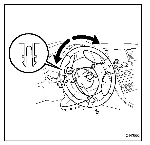 (b) Turn the steering wheel to the left and right as necessary to install the 2 screws.