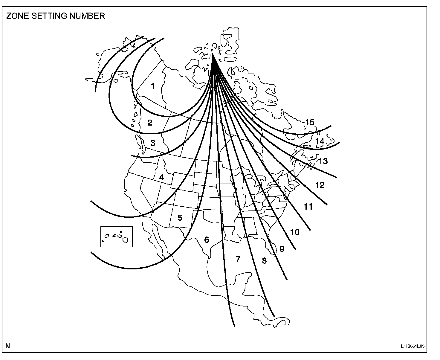 b. Compass function calibration is necessary when: 1) purchasing a vehicle, 2) disconnecting and reconnecting the cable from the negative (-) battery terminal, 3) replacing a battery, 4) driving the vehicle out of the numbered set zone (see the zone map below, and 5) placing magnetic or metal objects on or near the accessory meter (multi-display).