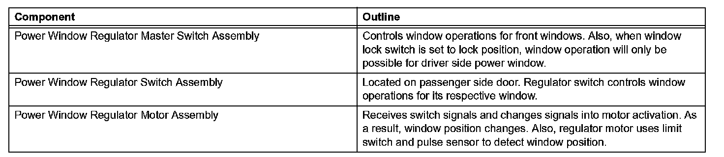 a. The power window control system controls the power windows UP / DOWN function using the regulator motors.