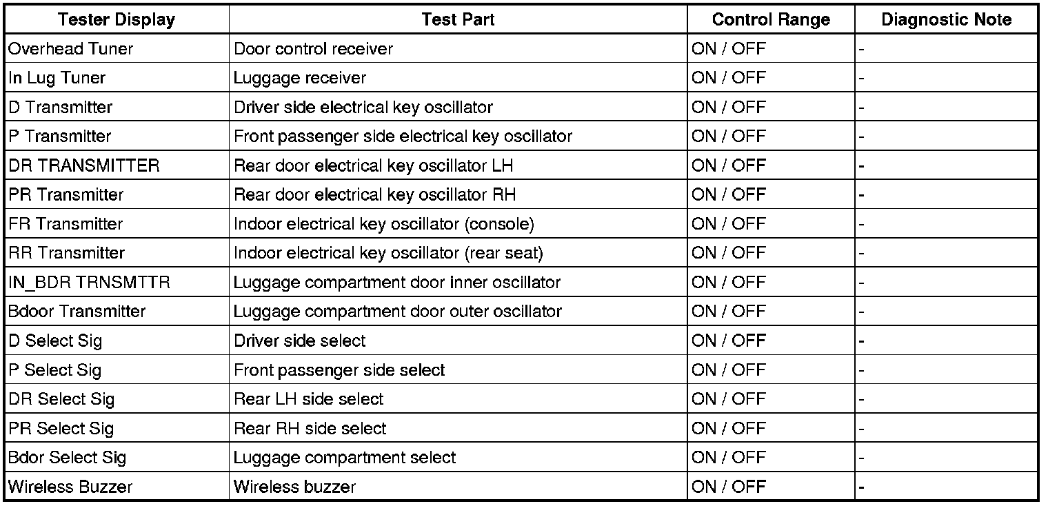 DOOR LOCK: SMART ACCESS SYSTEM WITH PUSH-BUTTON START: DATA LIST / ACTIVE TEST