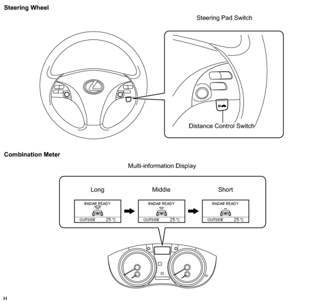 (d) Check that the indication of the vehicle-to-vehicle distance, which is shown on the multi-information display on the combination meter, changes from long to middle to short in that order.