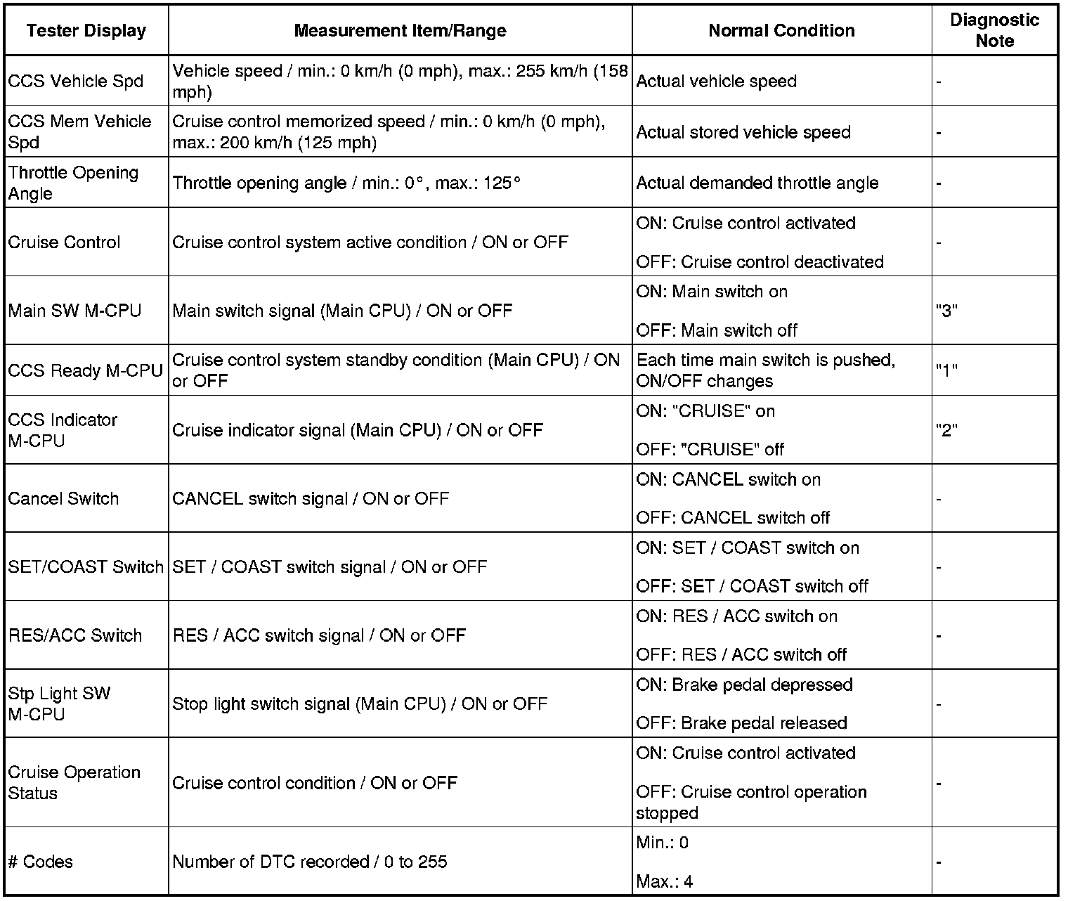 CRUISE CONTROL SYSTEM: DATA LIST / ACTIVE TEST