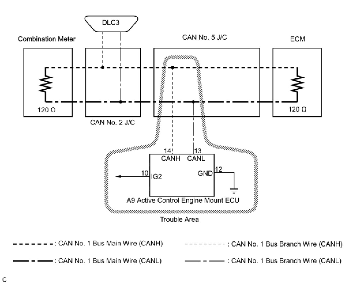 NG -- REPAIR OR REPLACE CAN NO. 1 BUS BRANCH WIRE OR CONNECTOR (ACTIVE CONTROL ENGINE MOUNT ECU)