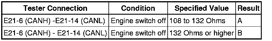 There may be an open circuit in the CAN No. 1 main bus wire and/or the DLC3 branch wire when the resistance between terminals 6 (CANH) and 14 (CANL) of the DLC3 is 69 Ohms or more.