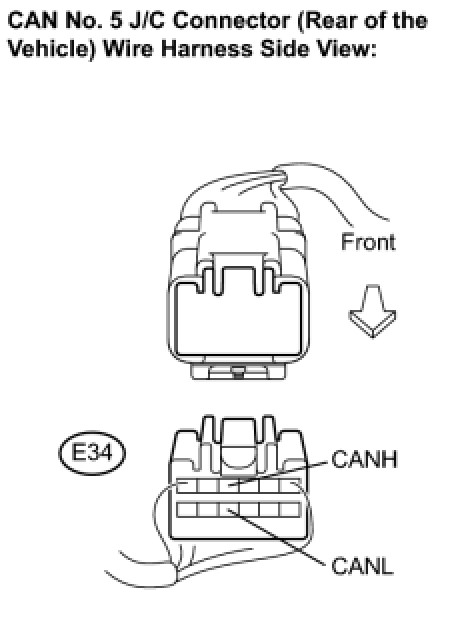 (a) Reconnect CAN main bus wire connector E34 to the CAN No. 5 J/C (rear side of the vehicle).
