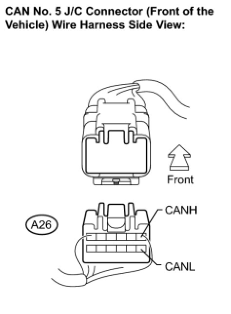 (a) Reconnect CAN main bus wire connector A26 to the CAN No. 5 J/C (front side of the vehicle).