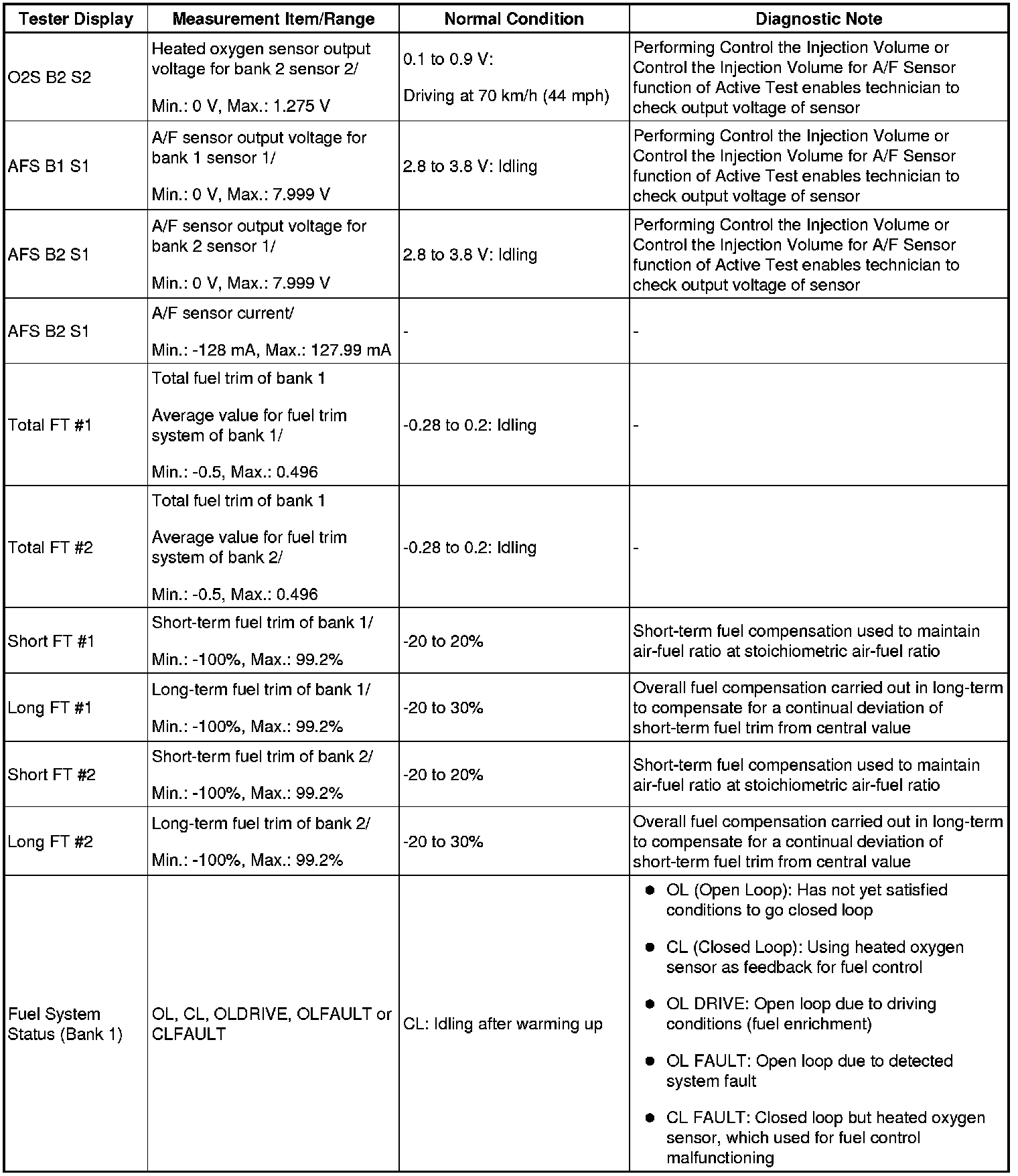 HINT: By reading the Data List displayed on Techstream, you can check values, including those of the switches, sensors, and actuators, without removing any parts. Reading the Data List as the first step in troubleshooting is one method of shortening diagnostic time.