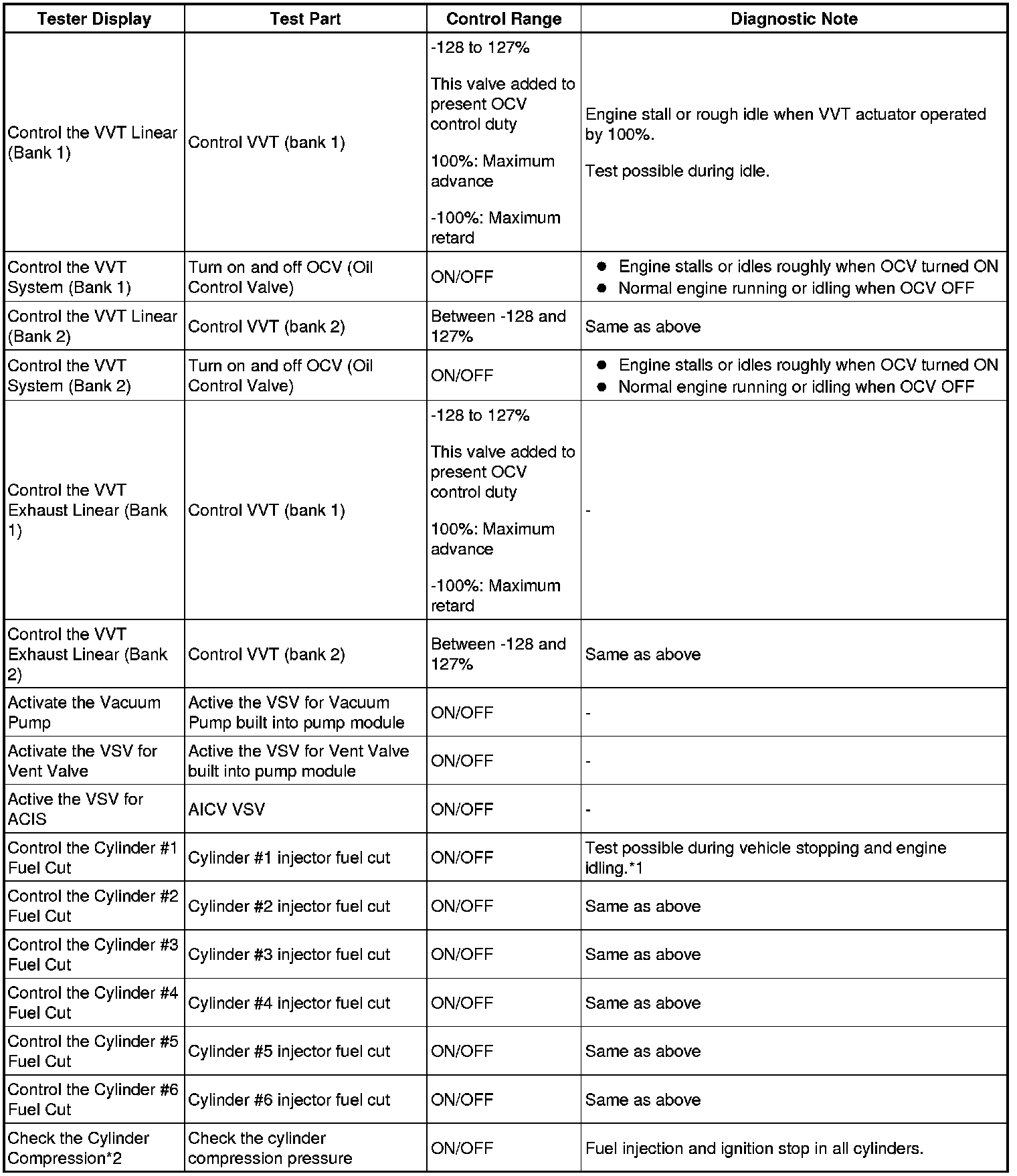 - *: Data List values are displayed only when performing the following Active Test: Control the VVT Linear (Bank 1 or Bank 2) or Control the VVT Exhaust Linear (Bank 1 or Bank 2). For other Active Test, the Data List value will be 0.