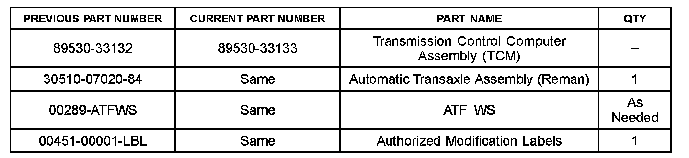 Follow the procedures outlined in TSIB No. SS002-07, "Techstream ECU Flash Reprogramming Procedure", and flash the TCM with the NEW calibration file update.