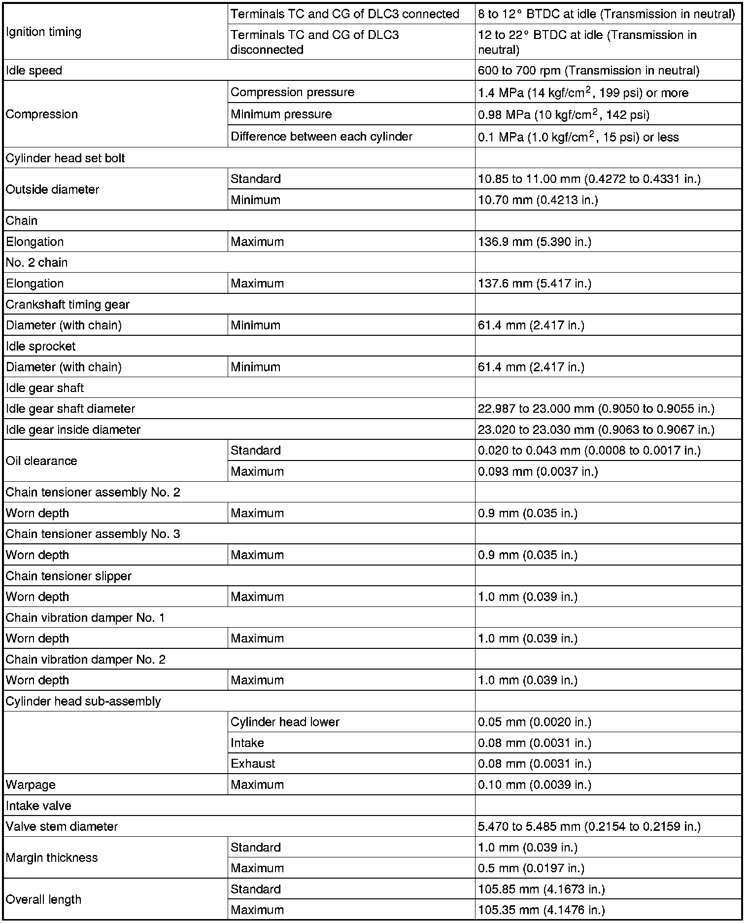 SERVICE SPECIFICATIONS: 2GR-FE ENGINE MECHANICAL: SERVICE DATA